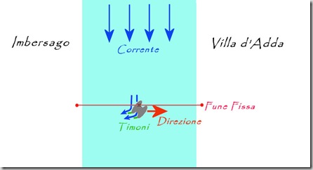 La spiegazione fisica è molto semplice: se non ci fosse la fune fissa, il traghetto prenderebbe una direzione obliqua rispetto al fiume, per la somma delle forze vettoriali di spostamento date dalla corrente e dal timone. Aggiungendo invece il vincolo della fune fissa, viene presa solamente la componente orizzontale della forza risultante.